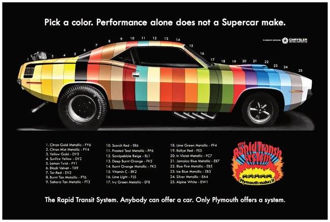 Mopar Official Lic ensed Product. This is the 1970 Plymouth Rapid Transit Systems commercial. Mels 1970 Plymouth Cuda 440 6-pak. Plymouth Rapid Transit System Poster. The Rapid Transit System Mopar Club of Omaha NE added 12 new photos to the album. 546 likes 63 talking about this. Although sporadic and linked to the racing schedule itself there was no other promotion like it on the muscle car market. Plymouth showed its models from this system which they were Valiant Duster 340 Cuda Road Run. Sign in to check out Check out as guest.