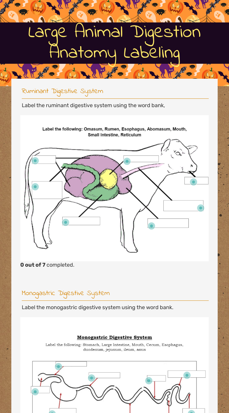 Digestive Systems Sarah D. This worksheet includes a drawing coloring and labeling the parts of the ruminant digestive system on a cow. Then students will answer questions about the ruminant and monogastric digestive system.