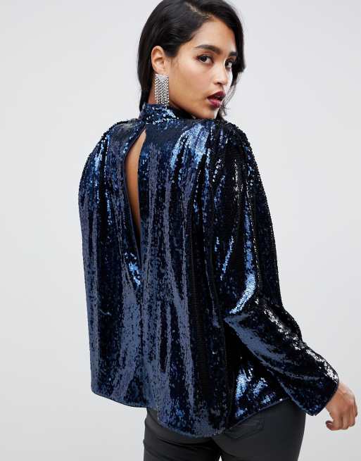 Sequin Shoulder Pad Top